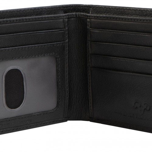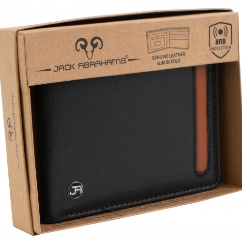 Jack Abrahams Goat Nappa Leather Bi-Fold Wallet with Flip ID Window Black/Cognac