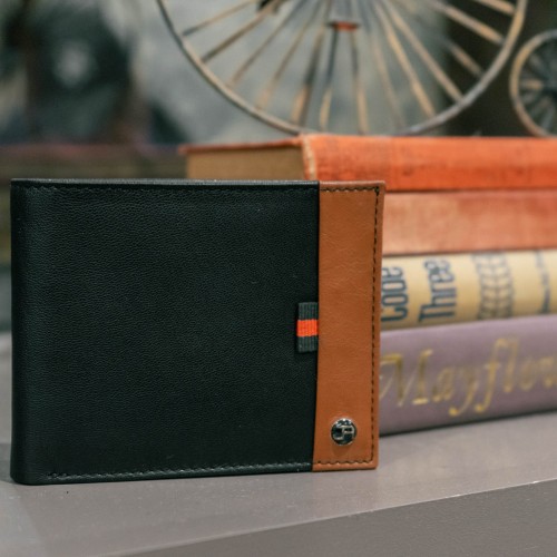 Jack Abrahams Goat Nappa Leather Bi-Fold Wallet with ID Case Black/Cognac