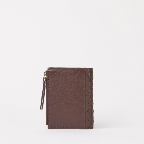 Our best selling Jamie Wallet, introduced in Chocolate Woven Soft Grain Leather adds depth and texture to an everyday classic. This compact billfold includes a popper closure, six card slots, a cash compartment, and a zipped pocket for coins. Jamie delivers timeless function with elevated craftsmanship.
