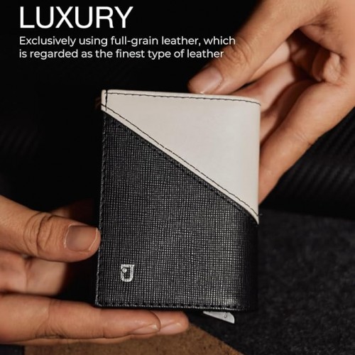 - 【 100% Full Grain Saffiano Leather 】 Handcrafted from Finest Italian Vegetable Tanned Full-Grain leather, known as “the sapphire of genuine leather” (made from top layer of the cowhide, commonly found in premium fashion) treated with wax for a subtle shine, silver accents, over time, Jarvis wallet surface will develop a unique patina—a hallmark of high-quality real leather. We believe that an exquisite Air-Tags wallet can only be crafted by using the finest materials and masterful craftsmanship.