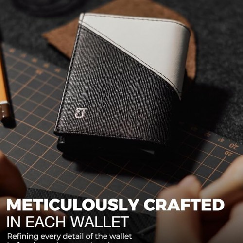 - 【 100% Full Grain Saffiano Leather 】 Handcrafted from Finest Italian Vegetable Tanned Full-Grain leather, known as “the sapphire of genuine leather” (made from top layer of the cowhide, used only for luxury fashion) treated with wax for a subtle shine, silver accents, over time, Eclipse wallet surface will develop a unique patina—a hallmark of high-quality real leather. We believe that an exquisite smart wallet can only be crafted by using the finest materials and masterful craftsmanship.