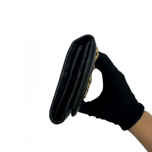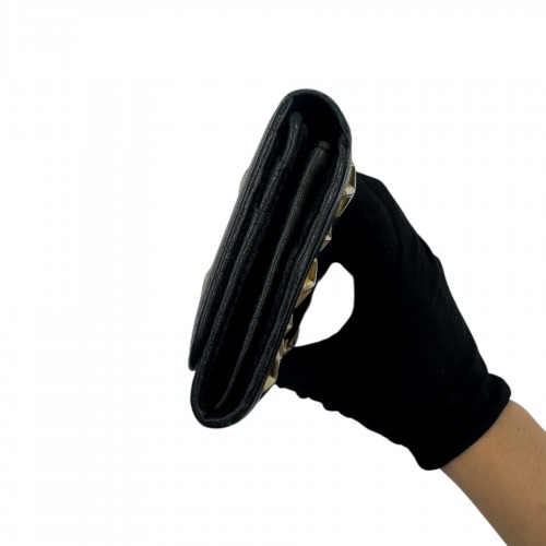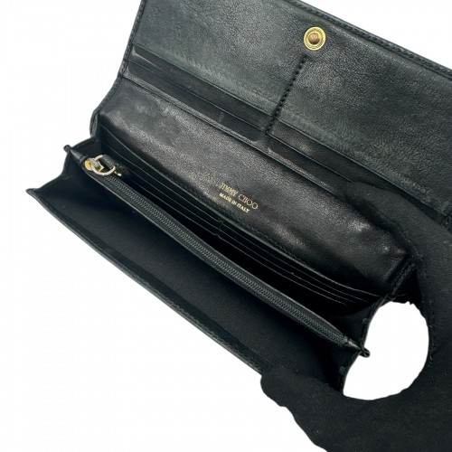 Jimmy Choo black leather continental wallet featuring gold-tone star studs across the front flap.