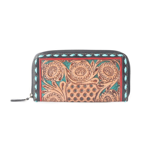 The Jungle Tiny Wallet is a charming fusion of artistry and function, perfect for your Western-inspired adventures. Adorned with intricate hand-tooled details and lively floral patterns, this cowgirl wallet has compact accessories which add a splash of color to your rodeo nights or concert outings. Designed for security and convenience, this Western leather wallet features an RFID protector and an organized credit card compartment, making it a must-have for any cowgirl on the go.
