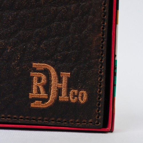 - Genuine oiled leather large bifold wallet brown with horse hair braid