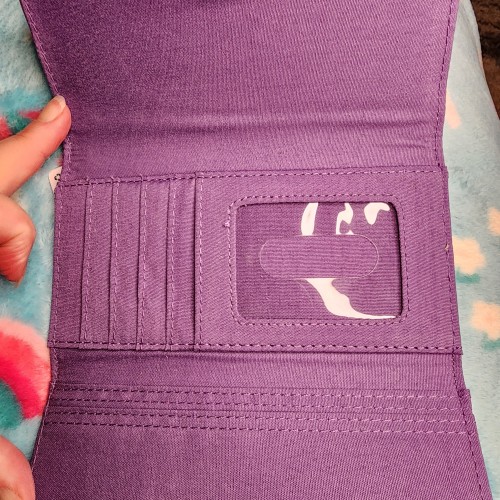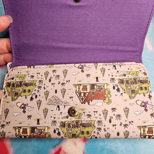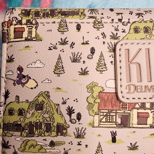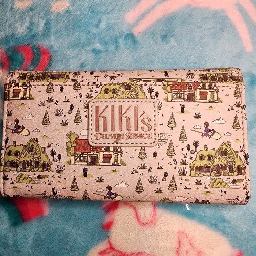 Awesome Kiki’s Delivery Service Wallet. It has a snap front closure which opens to a tri-fold wallet. It has slots for credit cards and a ID slot. Great for everyday use
