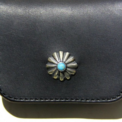 The turquoise shell studs are custom-made to your specifications.