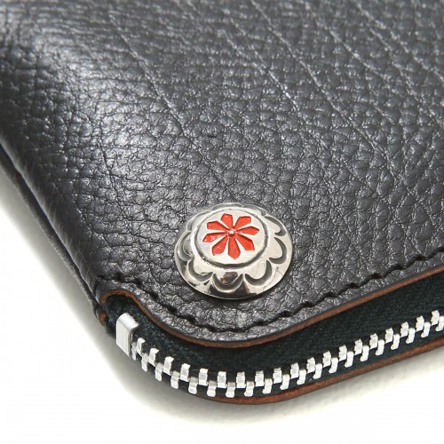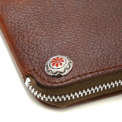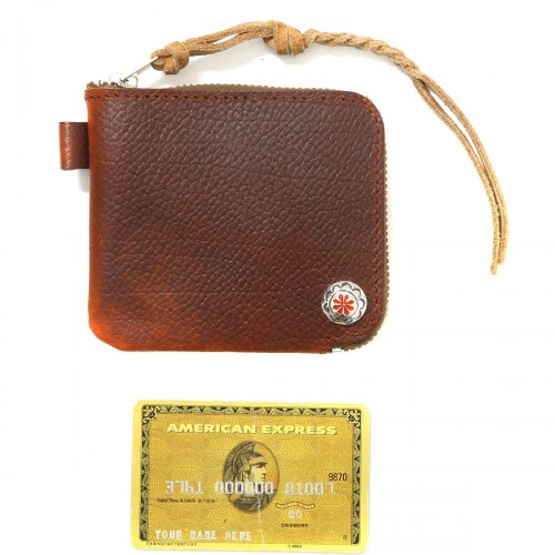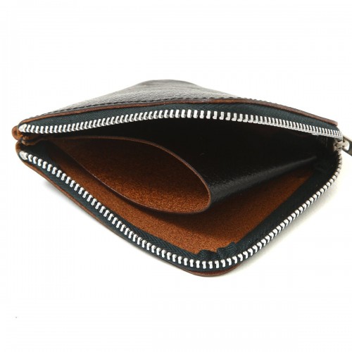 Embossed L-zipper short wallet-EMBOSSED L ZIPPER SHORT WALLET-. This is a custom L-zipper long wallet with an embossed grained pattern on the surface. This wallet is made of the original saddle leather of Larry Smith, commonly known as “Lawrence leather”, and is made in the traditional way. Everything from dyeing to sewing is done by hand by craftsmen in Japan. The zip comes with braided deerskin leather. Storage includes one pocket for coins and two free pockets.