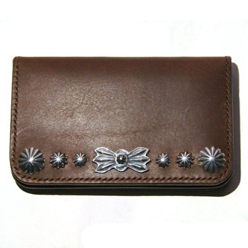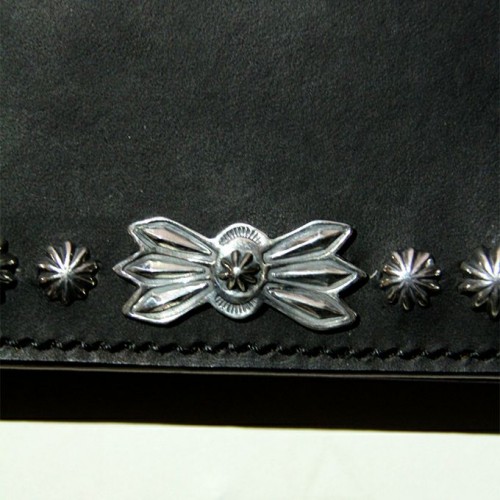 One pocket for notes and one for coins, and three free pockets are placed for storage. Design work with silver conchos on the body.