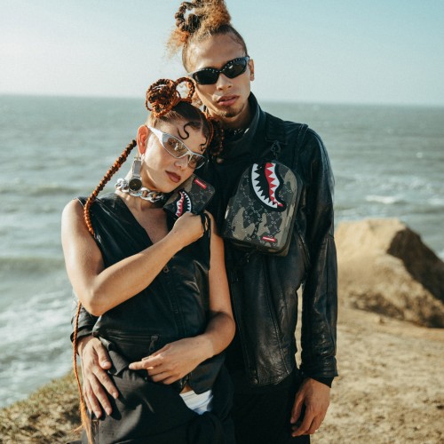 Laser cut camo fabric with metallic fabric underneath for subtle shimmer