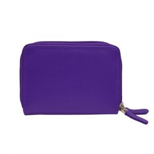 Leather Double Zip Around Card Case RFID