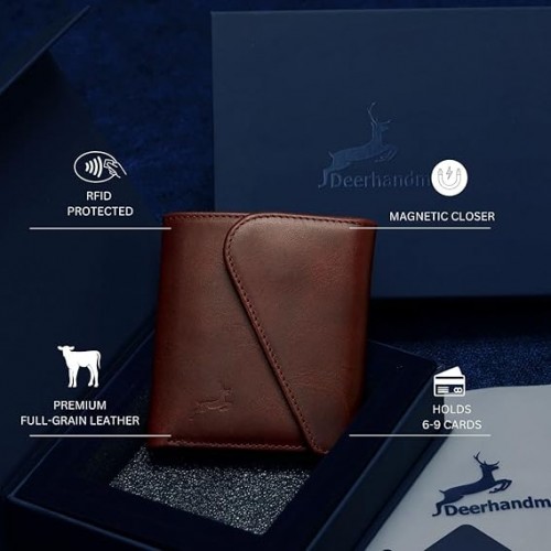 - GREAT GIFT IDEA – COMES IN A STYLISH GIFT BOX: Packaged in an elegant gift box, DEERHANDMADE mens leather wallets makes an ideal present for any occasion. It’s a practical and stylish wallet for men leather that will impress anyone with its thoughtful design and high-quality finish.