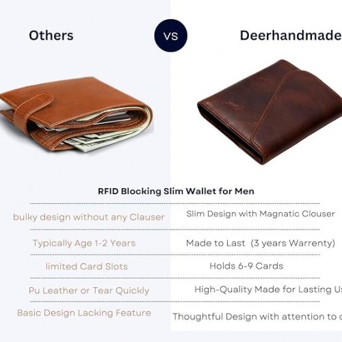- EXCEPTIONAL QUALITY HANDMADE WALLET: DEERHANDMADE small leather wallet men are crafted from premium full-grain leather. Handmade in Istanbul, our leather wallets for men embody high-quality craftsmanship that men seeking stylish. Expertly crafted pocket wallet for men to enhance your style, ensuring durability for years.