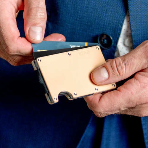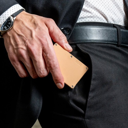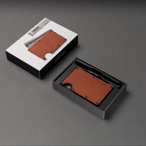 The Ridge Leather Wallet is made with oil-waxed, full-grain leather and designed to patina over time. Soft to the touch but packed with all the security features of the metal wallets.