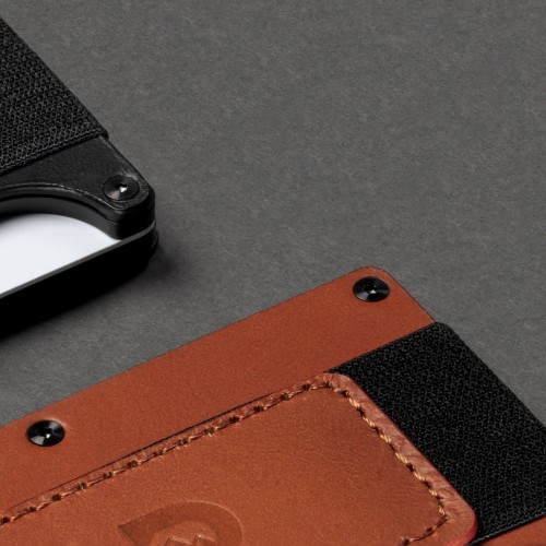 Leather Cash Strap: A thin, versatile elastic strap featuring a luxurious sewn-leather pad. Ideal for carrying: cash, ID’s, or RFID-enabled cards.