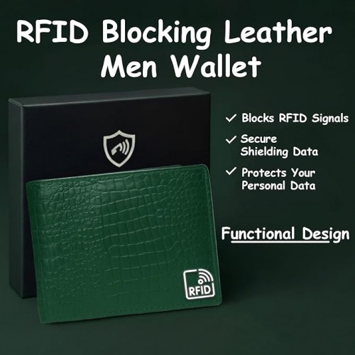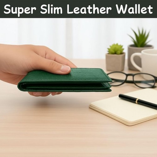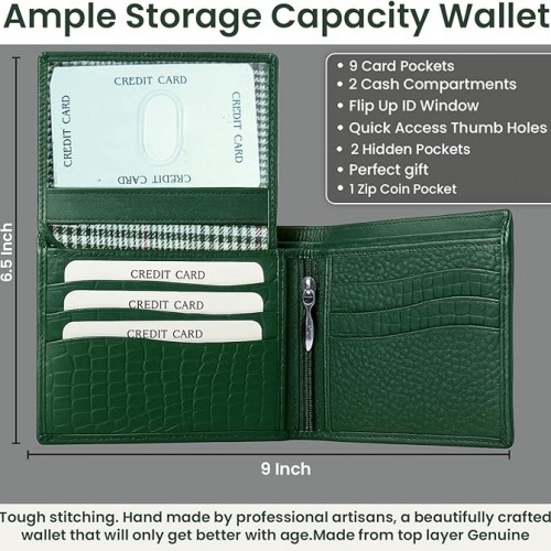 Leather Wallet RFID Blocking – Slim Minimalist Bifold Wallet for Men – Genuine Leather Men’s Wallet with 9 Card Slots, 1 ID Window, 2 Hidden Pockets, 1 Zip Coin Pocket & 2 Cash Compartments – Green