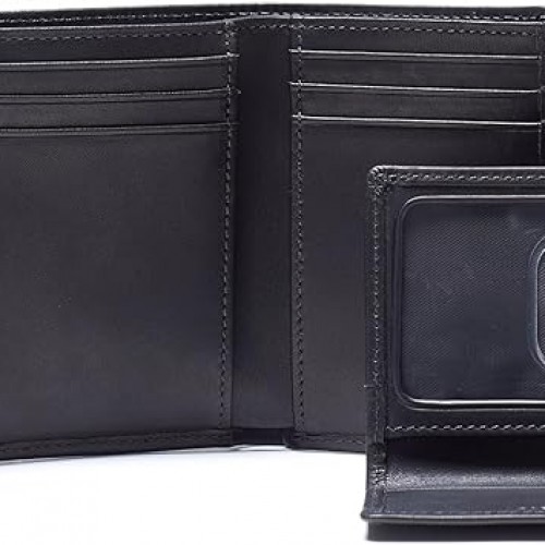 - Ample storage: The Trifold with Card Wallet offers space for cards, bills, and receipts, featuring a double bill compartment and a removable card sleeve with a thumb-slide ID window.