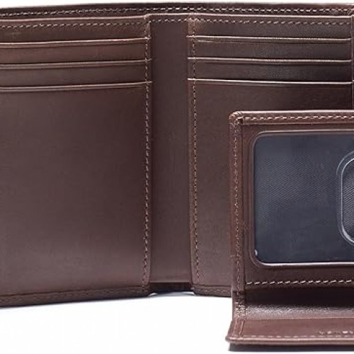 Leatherology Premium Mahogany Trifold with Card Wallet – Ample storage, Removable card sleeve, Double bill compartment