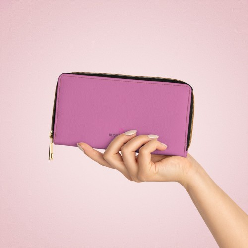 Light Pink Color Zipper Wallet, Solid Pink Color Long Compact Designer Premium Quality Women’s Wallet