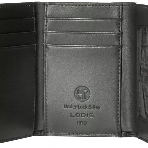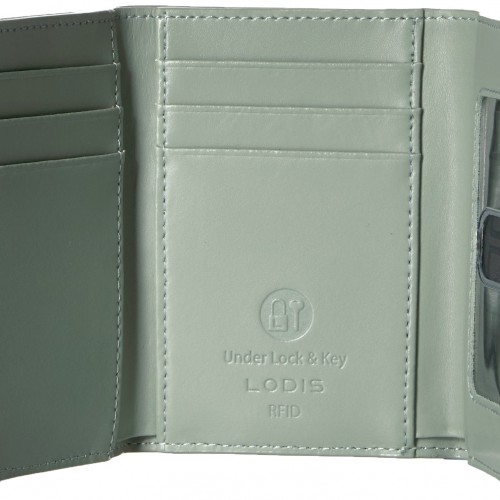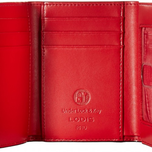 Quite simplychic, timeless beauty, refined and elegant. Smooth grain Italian leather, contrasting trim, and interiors featuring new Lodis organizational bag-moji icons and Lodis Under Lock and Key (trademark pending) RFID protection. Chic and petite version of the classic French Purse. Features: Snap closure, Exterior zip coin pocket, 1 bill compartment, 6 credit card slots, 2 slide pockets, ID window with thumb glide, back zipper pocket. RFID protection in entire wallet when closed. One year warranty against manufacturing defects.