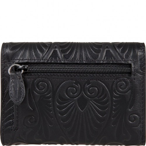 Denia offers festival ready accessories for the woman-on-the-go. With an embossed deco paisley emboss on smooth, rich Italian leather; it is a luxe update to a bohemian feel. Chic and petite version of the classic French Purse. This wallet features a snap closure with an exterior zipped coin pocket with interior card and bill slots.