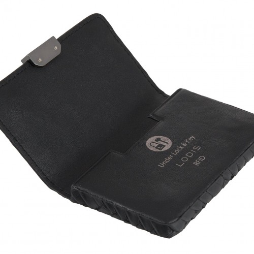 Textural and playful, the Nova collection by Lodis offers a fresh mix of classic tailoring and a not-so-classic woven embossed Italian rubberized leather. It features gunmetal jewelry-grade hardware, and Lodis Under Lock and Key (trademark pending) RFID protection. Chic business card case holds up to 30 business cards – for the businesswoman with the heart of a fashionista. Features: Magnetic closure, Holds up to 30 business cards or 12 credit cards One year warranty against manufacturing defects.