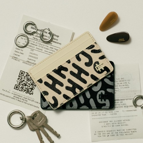Christy Ng’s Logo Series is a collection of equal parts statement and staple. Crafted from canvas-effect vegan leather with oversized Christy Ng prints, it is a cardholder that you will be able to spot easily in your bag. It comes with 4 card slots and a central compartment for receipts and cash. This slim cardholder will easily fit into any Christy Ng’s bag.