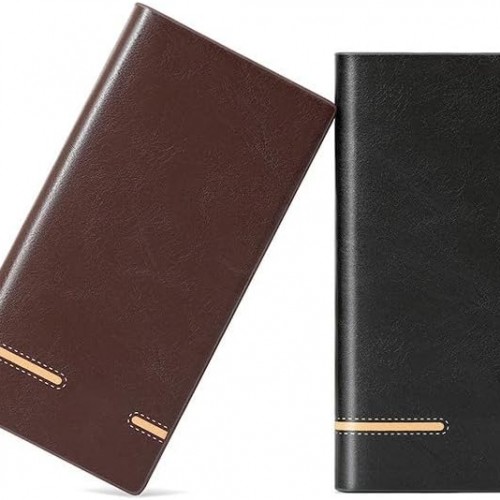 Long Genuine Leather Wallet for Men Large Capacity Cowhide with Zipper Closure Multiple Card Slots Gifts for Men (Black)