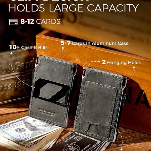 - Minimalist & Ultra-Slim Design: The minimalist design combines practicality, elegance and style for traditional men’s wallets. The wallet measures just 2.87 x 3.89 x 0.6in, so it fits easily in the front pocket, and its hand-engraved aluminum case with a pop-up card case design can hold 5-7 cards, it also provides an additional card slot for up to 3-5 cards; In addition, there are holes on both sides of the top of this wallet for Keychain or AirTag holder to hang.