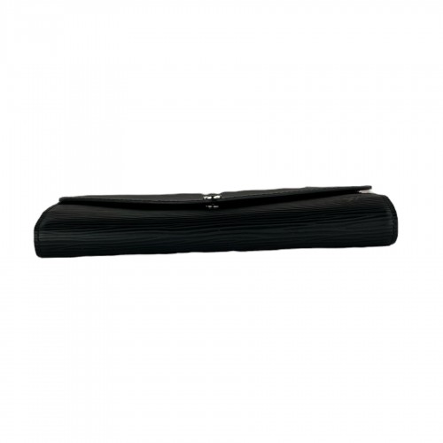 Louis Vuitton Sarah Epi Wallet from 2019 collection. Wallet features black epi leather exterior, grained calfskin interior, interior open pocket, zippered pocket, twelve card holder slots, exterior open pocket, four exterior card holder slots, snap closure, and silver-toned hardware. Wallet is excellent condition. Certificate of authenticity, courtesy of Entrupy, included. Made in Spain.
