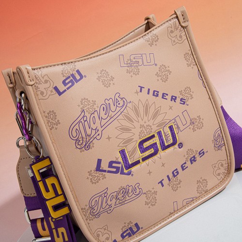 Louisiana State University Fighting Tigers Crossbody Purse With Wristlet Keychain