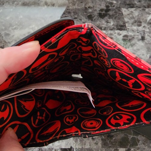 2022 Fall Convention exclusive Baymax red patent leather wallet. This wallet is so cool and the color is amazing. It has a snap closure with slots for credit cards and a ID slot. There is a large compartment for bills and a zipper pocket on the back for coins and bills. Great for everyday use.