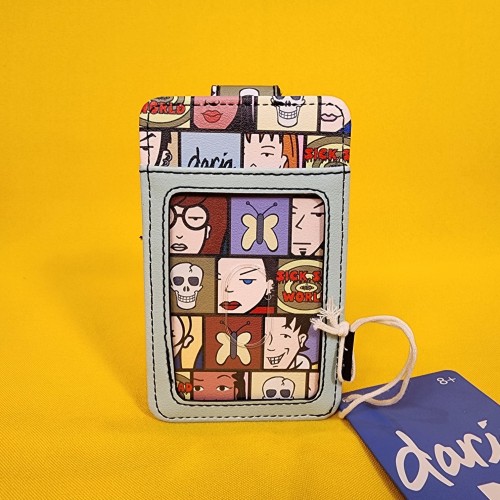 Get outta the suburbs with your essential cards packed into this Daria cardholder! Featuring a grid design with characters and icons from the show, plus a circular front strap with Daria peeking over. Comes with 4 card slots and clear ID slot on the back.