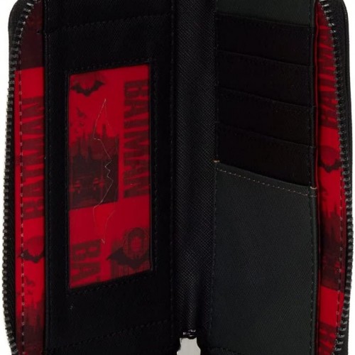 Gotham City needs your help! Keep your cards and cash safe while you assist the Caped Crusader in the Loungefly DC Comics The Batman Cosplay Zip-Around Wallet. This faux leather wallet features applique, embroidered and printed details.