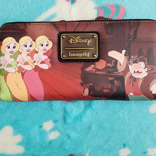 Awesome Loungefly Disney Belle and Gaston Wallet. It has the Bar Maids and LeFou on the back of the wallet. It has an all around zipper closure with slots for credit cards and an ID slot. It is great for everyday use.