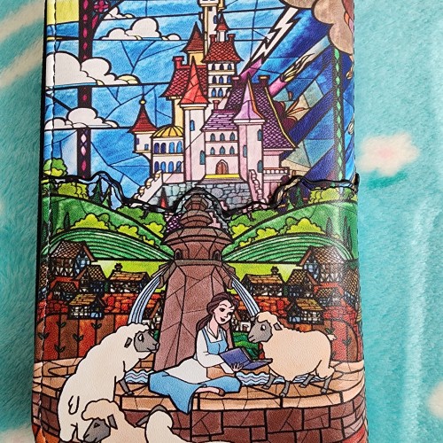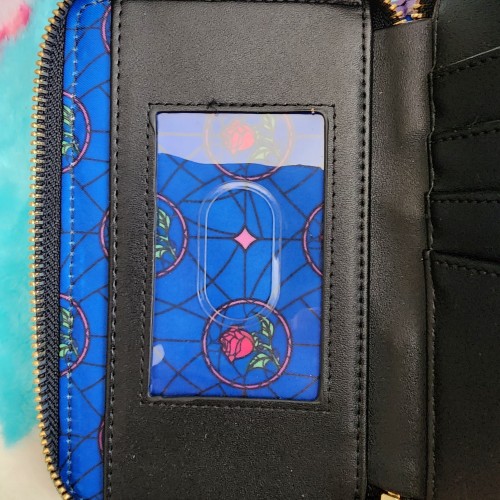 Awesome Loungefly Disney Beauty and the Beast Stain Glass Wallet. It has a all around zipper closure with slots for credit cards and an ID slot. It is great for everyday use.