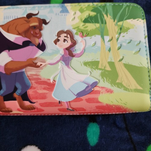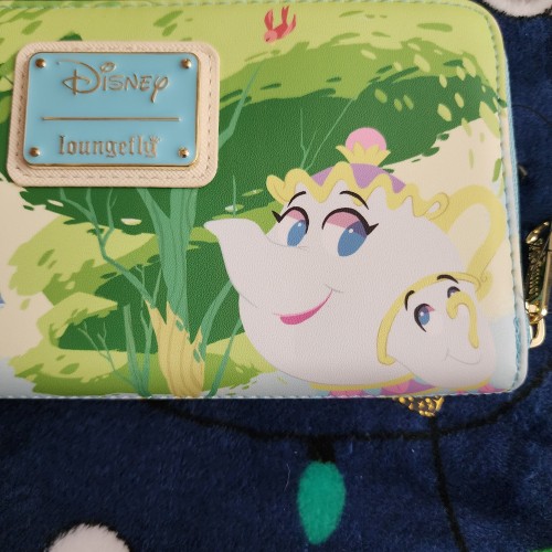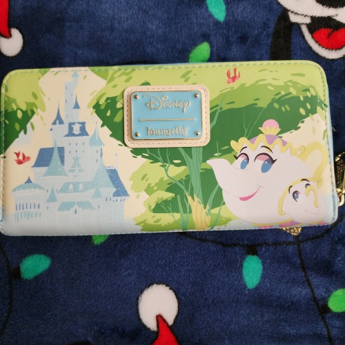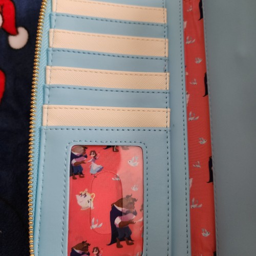 Awesome Loungefly Disney Beauty and the Beast Wallet. It has the castle, Ms Potts and Chip on the back of the wallet. It has an all around zipper closure with slots for credit cards and an ID slot. It is great for everyday use.