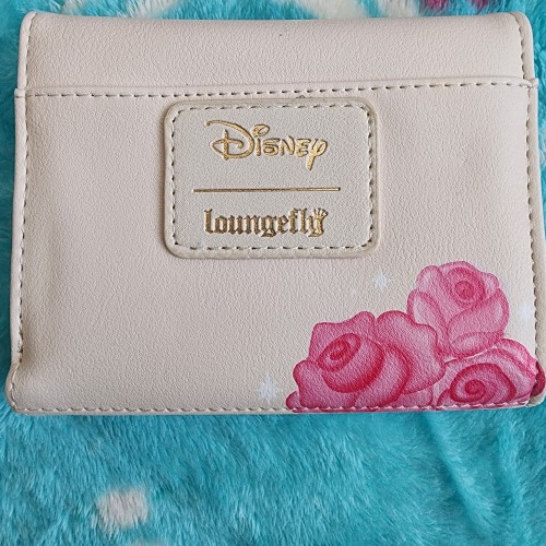 Awesome cute and smaller Loungefly Disney Belle and Roses snap closure Tri-fold wallet. It has slots for credit cards and a large compartment for bills. Great for everyday use.