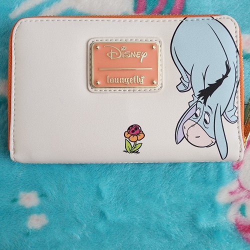 Awesome Loungefly Disney Eeyore from Winnie the Pooh Floral Wallet. It has a all around zipper closure with slots for credit cards and an ID slot. It is great for everyday use.