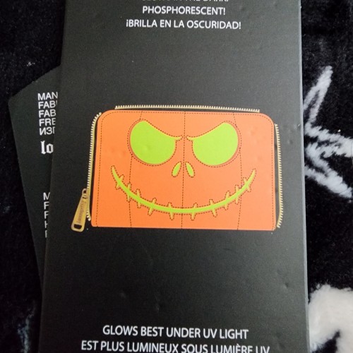 Super awesome Loungefly Disney Jack Skelton Nightmare Before Christmas Pumpkin face Wallet. It has an all-around zipper closure with slots for credit cards and a ID slot. Great for Halloween or everyday use.