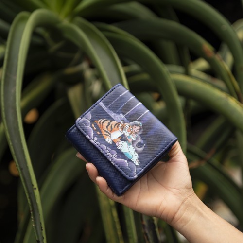 We’ve granted your wish with the Loungefly Disney Jasmine Castle Series Kisslock Wallet. The front portrays a sweet image of Princess Jasmine and Rajah. The back features our best friend, the Genie! Sit amongst the clouds and hang out with them. Top is a kisslock for faster closure.