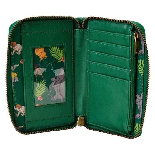 This beautiful interpretation of a Disney classic book features a “front cover” with gold foil lettering. Cherished characters gather in the jungle, including Mowgli, Baloo, and Bagheera. On the back, Shere Khan shows off his claws, and Kaa is coiled around Mowgli. Inside the wallet, you’ll find 5 slots for holding cards and 1 clear slot for displaying your ID. A die-cut shape of a leaf adds a nod to the jungle setting.