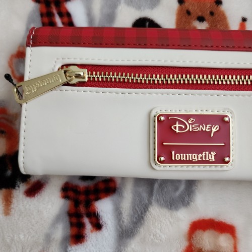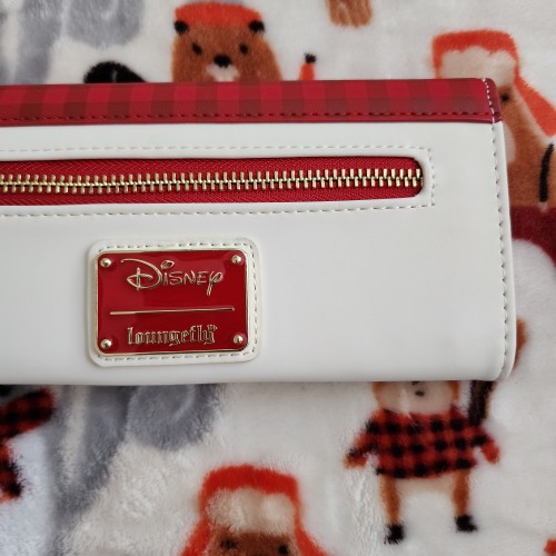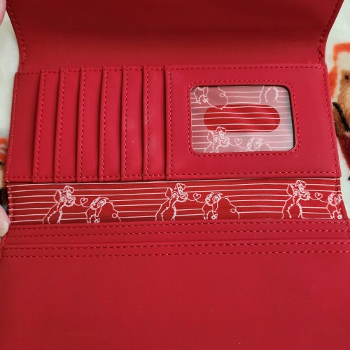 Awesome cute and Loungefly Disney Lady and the Tramp snap closure Tri-fold wallet. It has slots for credit cards, ID slot and a large slot for bills. There is a zipper compartment on the back of the wallet for coins. Great for everyday use.