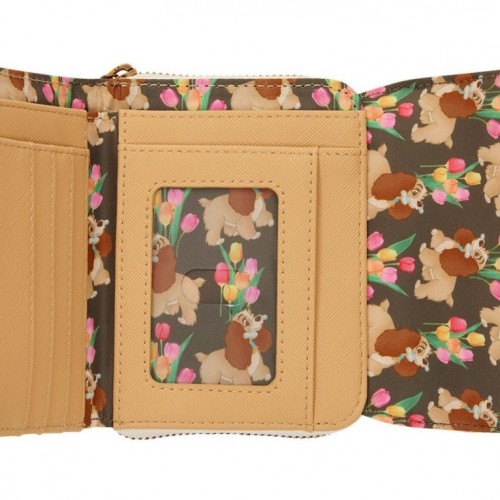 With a printed design of Lady, this trifold wallet includes embroidered tulips on the front flap. With a zippered accordion pocket, card slots, and a clear ID sleeve, this wallet is perfect for the Disney Parks. Don’t miss the mini backpack sold separately