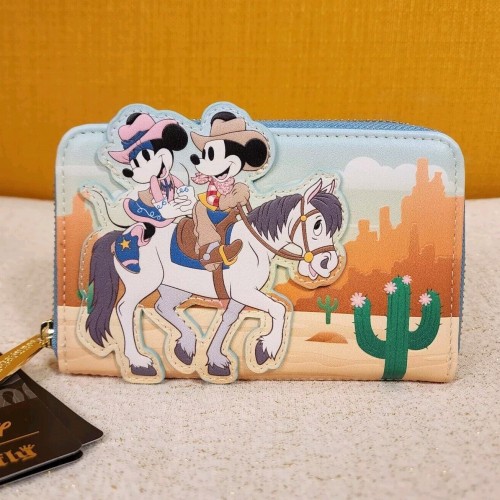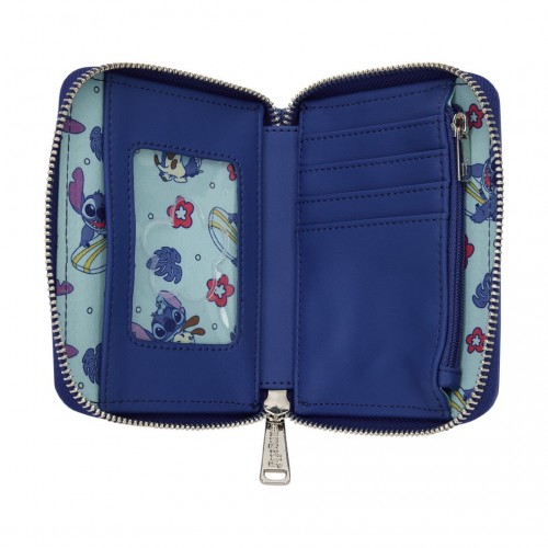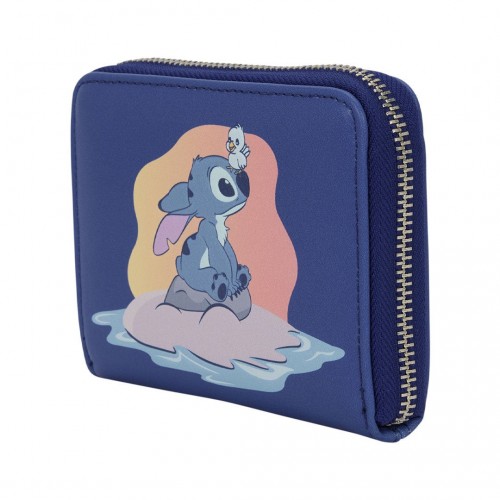 This zip around wallet features Stitch sitting on a rock with a bird resting on his head. A sliver of sunset is visible behind him. Turn the wallet around to find another image of Stitch with the bird. Inside, there are four card slots and one clear ID slot. It’s a super cute accessory for any Stitch fan to have throughout their day!