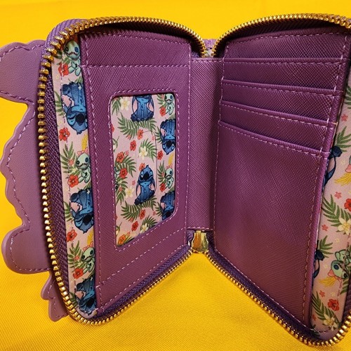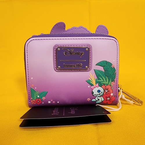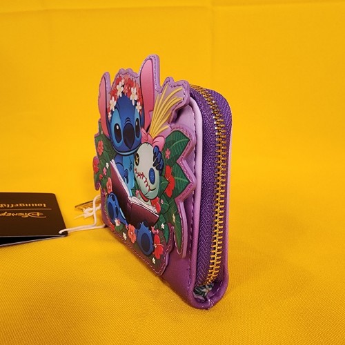 Loungefly Disney Lilo & Stitch Scrump & Stitch Reading Floral Purple Zip Wallet