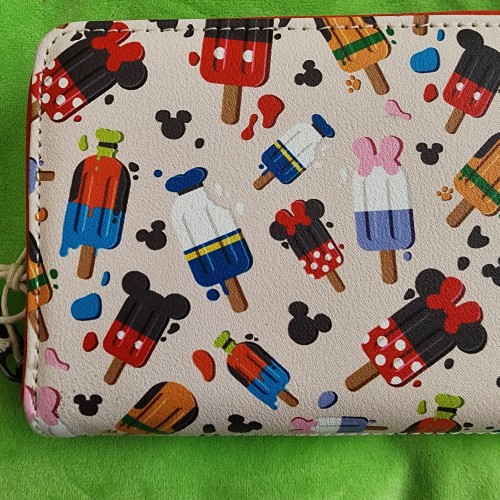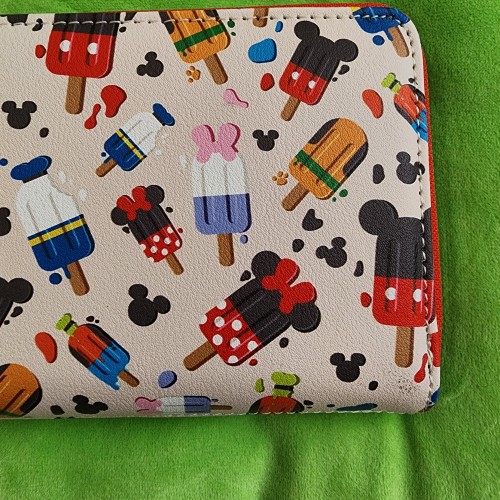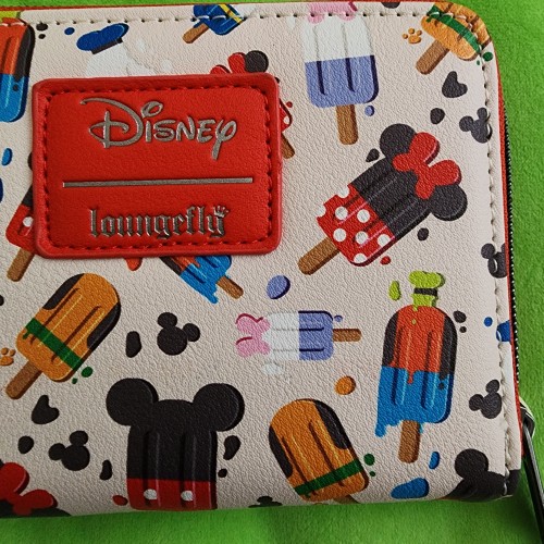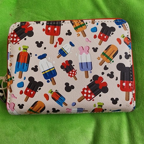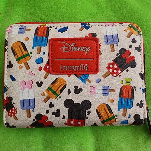 Awesome Loungefly Disney Mickey and Friends Popsicles Wallet. It has slots for credit cards and an ID slot. There is a small slot you can put bills in. This is a great gift for your loved one.