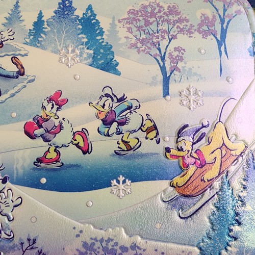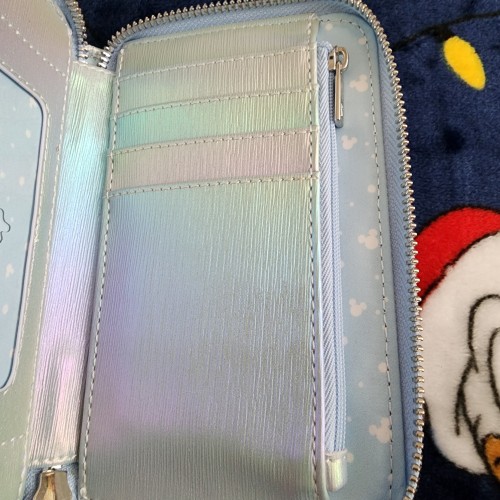 Add a touch of winter to your look with this Loungefly wallet! Featuring embossed details of Mickey and Friends on the front, the back includes matching designs on an iridescent backdrop. With four card slots, a clear ID sleeve, and a zippered pouch in the interior, this wallet is perfect for bringing on your next trip to the Disney Parks. Don’t forget the matching tote, crossbody, and mini backpack all sold separately.