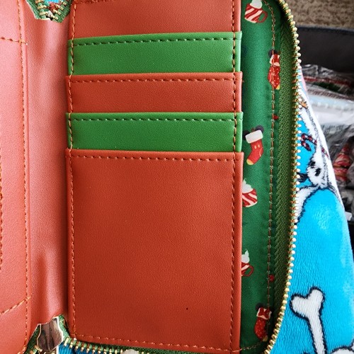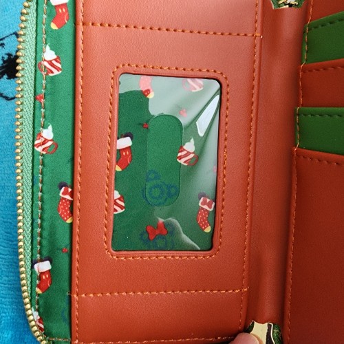 Awesome Loungefly Disney Mickey and Minnie Mouse Fireplace Hot Coco Wallet. It has slots for credit cards and an ID slot. There is a small slot you can put bills in. This is a great gift for your loved one.