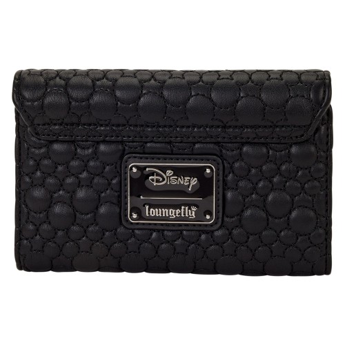 Why not have some Disney flair with your wallet!? This wallet features a quilted pattern all over of Mickey Mouse silhouettes. The top flap features a metal charm of a Mickey Mouse silhouette flanked by embroidered details of flowers and leaves. Inside, there are seven card slots and one clear slot for an ID. It’s the perfect Disney accessory to accompany you throughout the day!