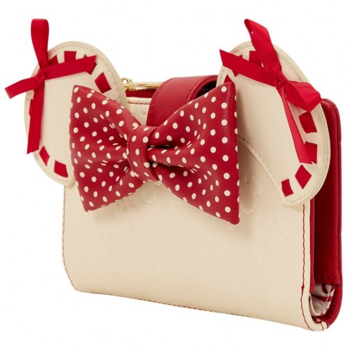 Embossed with Minnie Mouse silhouettes, this wallet includes a polka dot bow on the closure and applique ears with ribbon details. With card slots, a clear sleeve, a zippered pouch, and a bills compartment, this wallet is perfect for the Disney Parks.